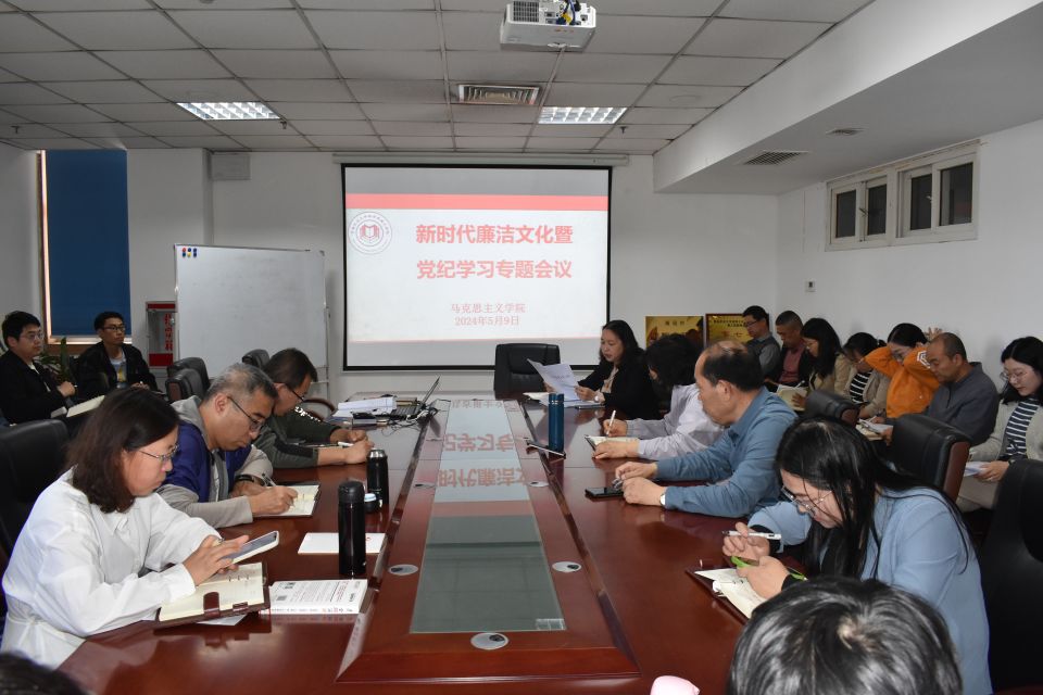为贯彻落实党中央《关于在全党开展党纪学习教育的通知》,高质量开展党纪学习教育,5月9日下午,365英国上市官网网址组织“新时代廉洁文化专题暨党纪专题学习”,会议由学院副院长纪咏梅主持,学院全体教师参加。
