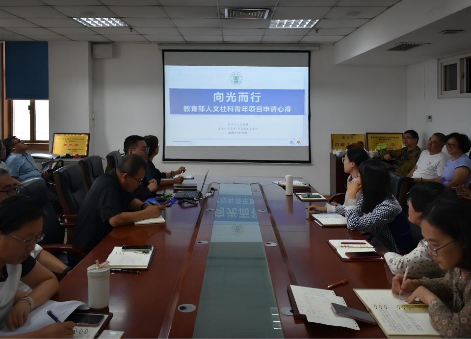 修彩波做总结及动员,指出学院的发展需要全体成员的共同努力,分析了青年教师在申请国社科、教育部人文社科等高级别项目中的优势。勉励大家要潜心学术研究、积累学术成果,增强学术自信、力争实现科研立项的新突破。
